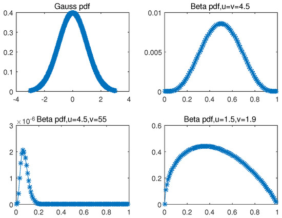 Beta pdf and Gauss pdf.