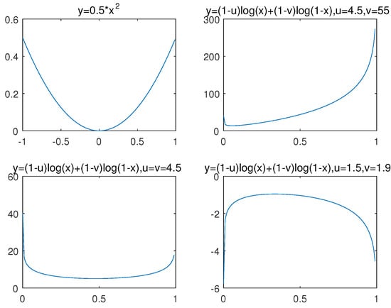 Suppose noise in Equation (5) adheres to Beta distribution with mean and variance , thus we can get , [13,14], where is the normalization-factor. By Equation (10), the Beta-noise empirical risk loss is