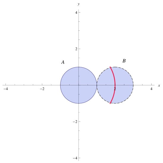 In addition, if we take , , and given as , then T verifies the condition of Theorem 3. Hence T fixes the disc