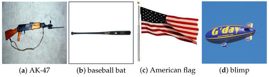 In our experiment, we randomly select four categories of data: AK-47, baseball-bat, American flag, and a blimp. Some samples are shown in Figure 2.