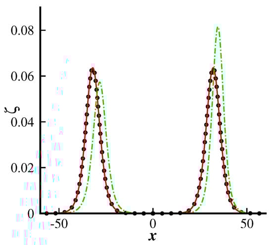 - Mirie, R.M.; Su, C.H. Collisions between two solitary waves. part 2. A numerical study. J. Fluid Mech. 1982, 115, 475–492. [Google Scholar] [CrossRef]