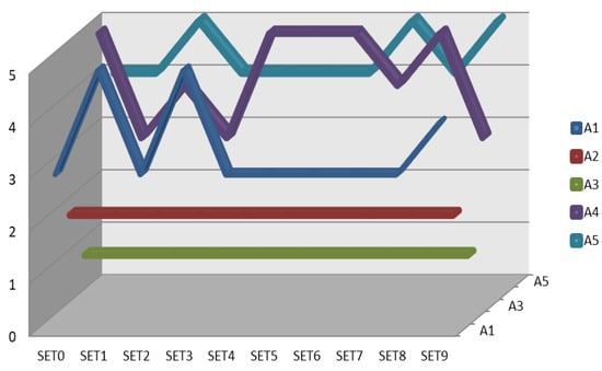 The ranks of alternatives do not change in the fourth, fifth, sixth, and eighth criteria, which implies that the most important criteria play a very important role in the decision-making process in this research. This is confirmed by the fact that there are significant changes in the rankings in the first and third sets when all the criteria are equal, i.e., when the six most important ones are eliminated. In other scenarios there are no significant changes. It is important to emphasize that the two alternatives that represent the best solution, A3 and A2, do not change ranks in any scenario, which implies that they are insensitive to the changes in the significance of the criteria.