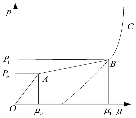 The relationship between hydrostatic pressure and volume strain of concrete is described by the piecewise state equation in the HJC model [22], as shown in Figure 2. In the linear elastic stage ():