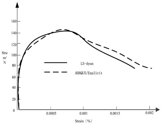 Since ABAQUS/Explicit has no HJC constitutive model, the test of the proposed model uses another explicit dynamic analysis software LS-dyna. The proposed model is implemented in ABAQUS/Explicit. The same model is built in LS-dyna and calculated by HJC structure model. In order to facilitate comparison, the proposed model is reduced to HJC model of plain concrete.