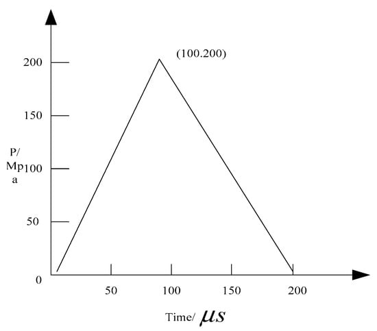 The section size of the high parameter steel fiber reinforced concrete simply-supported beam is 50*50 cm and the span is 4 m. The compressive strength of high parameter steel fiber reinforced concrete is Mpa and the tensile strength is Mpa. Poisson ratio is . The uniform load at the top of the simply-supported beam varies with time, as shown in Figure 7 and Figure 8.