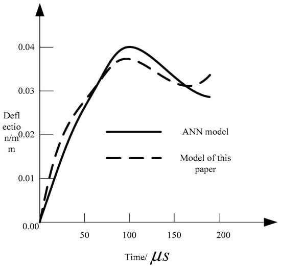 From Table 2, it can be seen that, using the proposed model to calculate plain concrete, it is consistent with the result calculated with HJC model. No matter the high parameter steel fiber concrete adopts the proposed model or the ANN constitutive model, the mid-span deflection decreases when the steel fiber content is increased. It shows the reinforcement effect of steel fiber on concrete. Therefore, the proposed model is reasonable and feasible.