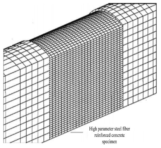 is the quasistatic compressive strength of plain concrete with 0% steel fiber content. For the high parameter steel fiber reinforced concrete, the relationship between and the feature parameters of the steel fiber is obtained from the compressive strength gain equation of the high parameter steel fiber reinforced concrete [27]. The gain equation is substituted into Equation (27), it can be obtained that
