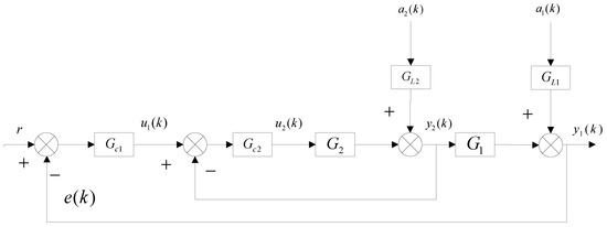 Consider the general cascade control system with unity feedback in Figure 1, where the is the set point, is the output error, is the controller output, is the system disturbance, is the disturbance filters, the effect of all unknown disturbances to the two loops are represented by them. is the primary and secondary loop controllers, for , it denotes the transfer function of feedback controller, is the sample time, and is the system output of outer loop and inner loop. The output control loop transfer function is and the inner loop transfer function is . The discrete shift is substituted by the backward shift . Obviously, the output is