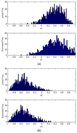 In the above equations, are the parameter of polynomials, and is the order of each polynomial. There are many methods to estimate the order of model and its delay time [19,23,24]. In this paper, we use the AIC criterion to obtain the order and delay time. Thus, the Equation (21) can be represented as,