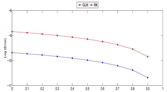 For Problem 1, in Table 3, it is observed that the left bound of errors at obtained by the fuzzy GLM is competitive with the fuzzy RK for . At , the left bound errors from the fuzzy GLM is comparable with fuzzy RK when . However, for the rest of errors fuzzy GLM achieved better accuracy compared to fuzzy RK. Moreover, the errors for the right bound of fuzzy GLM at both and are found to be one decimal place better than the fuzzy RK method. Meanwhile, the results acquired by GLM are almost the same with the results acquired by VIM. In comparison between GLM and HPM, GLM clearly outperformed the HPM.