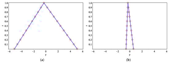 (a) Approximate solution of GLM (circle) and exact solution (line) at using type (i)-differentiability; (b) Approximate solution of GLM (circle) and exact solution (line) at using type (ii)-differentiability for Problem 3.