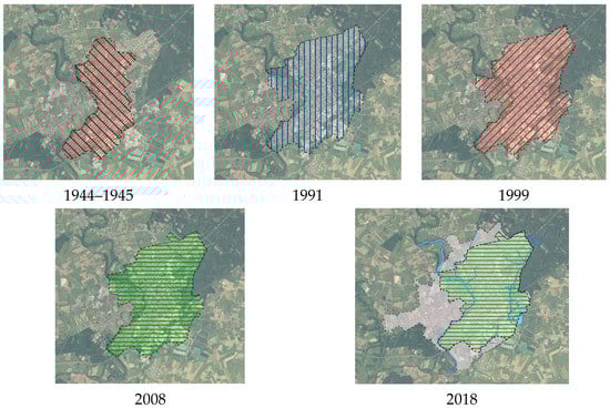 Across Europe, there is a complex mosaic of urban population development []. For instance, a decline in the size of urban population and an increase in rural population across Europe have been observed. Central and East Europe are not an exception [,,]. The ongoing migration of inhabitants to peripheral zones have driven such variations, and therefore suburban areas have grown, their activity has become integrated with the city, and rural areas have been afforded the opportunity to be connected with cities. The development of the urbanized environment and intensive construction processes include former agricultural areas that are located near the city. Good infrastructure, a well-developed transportation system, and lower land prices are important factors having an effect on the rapid spatial distribution of suburbs []. An increasing number of construction sites in suburban areas indicate the accelerated growth of low-rise residential buildings in natural, rural, and suburban landscapes, which results in forming the groups of new buildings, frequently urban brownfields, and landfill sites of construction waste [].