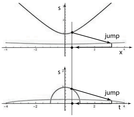 As for the s variable, we can make it longer or shorter, according to procedure of group contractions introduced first by Inönü and Wigner [17]. In this five-dimensional space, the boosts along the x direction with respect to the t and s variables are generated by