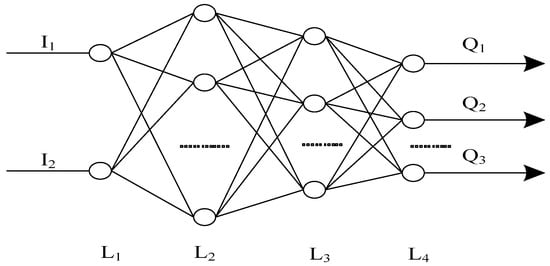 This paper uses neural network as shown in Figure 2. In Figure 2, layer is the input layer of the neural network, and the number of neurons is two, which is the input of two Holder coefficient eigenvalues, respectively; layer and layer are the middle layers of the neural network, and their number of neurons is 30 and 20, respectively. The transfer function chooses “tansig” function, layer is the output layer of the neural network, and the number of neurons is the same as the number of transmitted signals in the electronic communication network to be classified [18], and the transfer function selects the “logsig” function. The training algorithm of the neural network adopts the elastic back-propagation algorithm [19,20,21]. The supervisory signal is taken as the “0–1” signal and the error is 0.05.