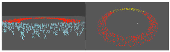 - Reynolds, C.W. Flocks, Herds, and Schools: A Distributed Behavioral Model. ACM SIGGRAPH Comput. Graph. 1987, 1, 25–34. [Google Scholar] [CrossRef]