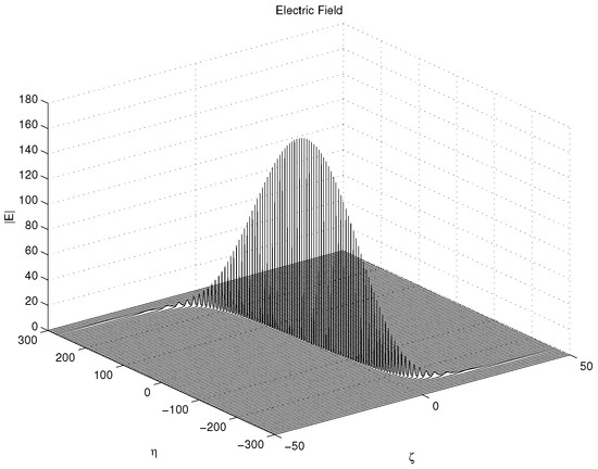 E-field vs. and for b = 0.015, k = −2 + 0.1i, = −60 and .