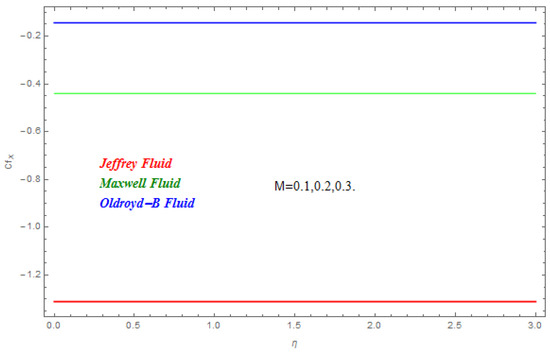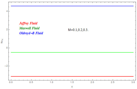 In this section we have demonstrated the effect of emerging dimensionless parameters on the presented model of nanofluids. Table 1 displayed the conclusions associated with emerging parameters of skin fraction coefficients. This shows the impression of magenatic field parameter M on skin fraction coefficients. The magenatic field parameter shows a reduction in the skin fraction coefficient. Table 2 demonstrated the conclusion of incipient parameters on local Nusselt numbers. The heat transfer rate decreases with the rise in thermal relaxation parameter while escalates with the increase in Prandtl number Pr. Table 2 shows that the thermal relaxation parameter has more effect on Jefferey nanofluids in comparison to Maxwell and Oldroyd-B nanofluids. Table 3 demonstrated the conclusion of an emerging parameter on the Sherwood number. The Sherwood number reduces with its rise, which upsurges with the escalation of the strength of homogeneous reaction and the strength of heterogeneous reaction .