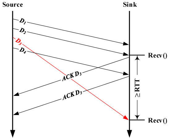 - Paxson, V.; Allman, M.; Chu, J.; Sargent, M. Computing TCP’s retransmission timer. RFC 6298. 2011. [Google Scholar] [CrossRef]