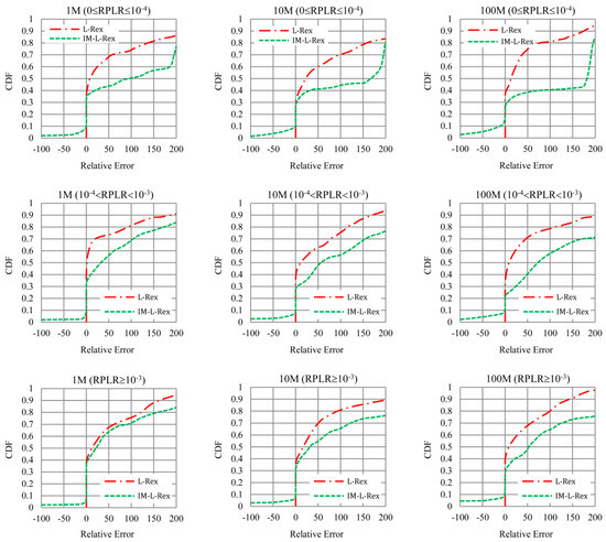 Cumulative distribution function (CDF) of the relative errors of L-Rex and IM-L-Rex.