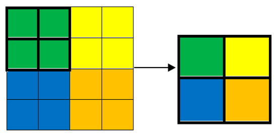 The input image which is high resolution image is then converted to the low resolution shown in Figure 1, where the value of a single pixel of low-resolution image IL is computed from every four pixels of high-resolution input image. The method of getting the low-resolution image from the high-resolution image is shown in Figure 1.