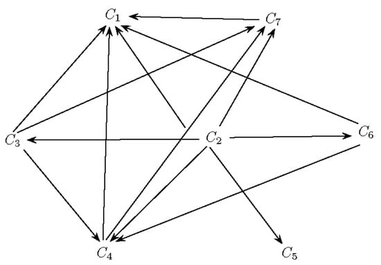 (xii). Finally, to rank the companies according to the outranking values of aggregated 4F linguistic dominance matrix T, we draw a directed graph for each pair of companies as shown in Figure 1.