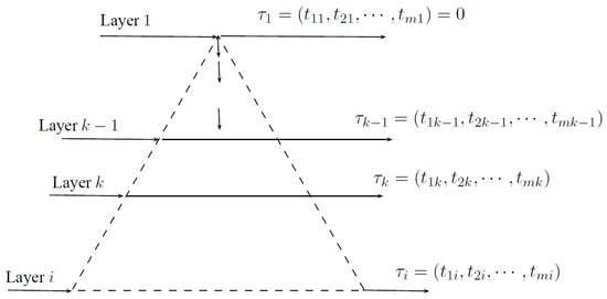 By considering the fixed , , and following Algorithm 2, the bottom-up construction of this model is given in Figure 13.