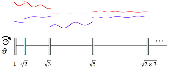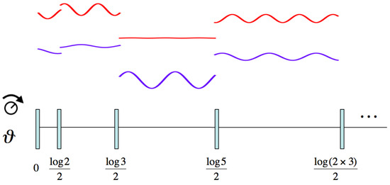 - is invariant under the scale transformation (dilations) , with . An example of this transformation is the classical trajectory (1), whose infinitesimal generator is . Under dilations, , so, the condition is preserved. Berry and Keating suggested to use integer dilations , corresponding to evolution times , to write [18]If there exists a physical reason for this quantity to vanish one would obtain the Riemann zeros . Equation (17) could be interpreted as the breaking of the continuous scale invariance to discrete scale invariance.