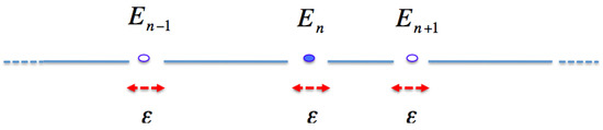 The first term on the RHS of this formula diverges in the limit , which corresponds to a continuum of states. The second term is minus the average number of Riemann zeros, which according to Connes, become missing spectral lines in the continuum [17,20]. This is called the absorption spectral interpretation of the Riemann zeros, as opposed to the standard emission spectral interpretation where the zeros form a discrete spectrum. Connes, relates the minus sign in Equation (5) to a minus sign discrepancy between the fluctuation term of the number of zeros and the associated formula in the theory of Quantum Chaos. We shall show below that the negative term in Equation (5) must be seen as a finite size correction of discrete energy levels and not as an indication of missing spectral lines.