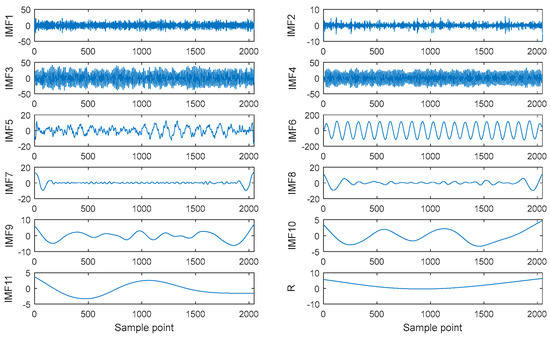 Decomposed result of vibration signal by CEEMDAN.