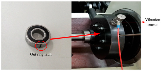 The test bearing presented a single point fault which was caused by electro-discharge machining (as shown in Figure 25). Table 2 shows the bearing parameters.