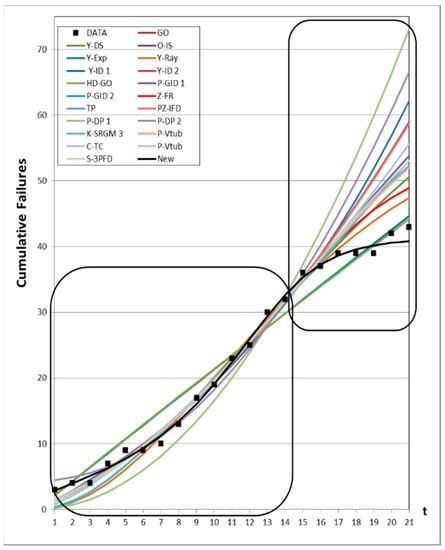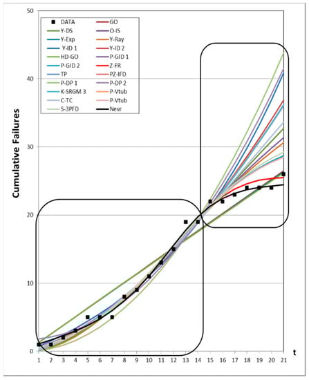 - Yamada, S.; Ohba, M.; Osaki, S. S-shaped reliability growth modeling for software fault detection. IEEE Trans. Reliab. 1983, 32, 475–484. [Google Scholar] [CrossRef]