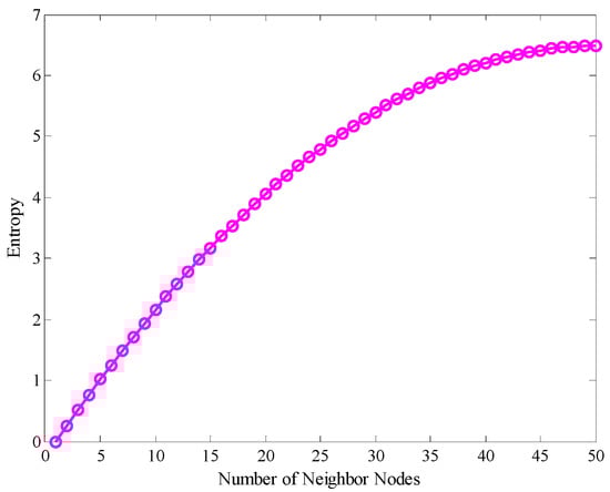 Figure 4 is a relationship diagram of the value of H and the number of neighbour nodes. Figure 4 shows that entropy H and the number of neighbour nodes are positively correlated.