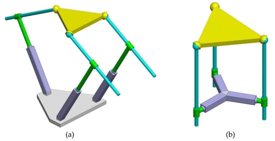 - Tsai, L.; Joshi, S. Kinematics and optimization of a spatial 3-UPU parallel manipulator. J. Mech. Des. 2000, 122, 439–446. [Google Scholar] [CrossRef]