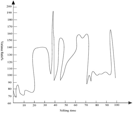 The ESMD method is used to perform the modal decomposition experiment on the basketball action data (the basketball action data observed on a fixed platform with a sampling frequency of 20 Hz). The specific modal decomposition variance ratio varies with the maximum number of data screening times as shown in Figure 2: