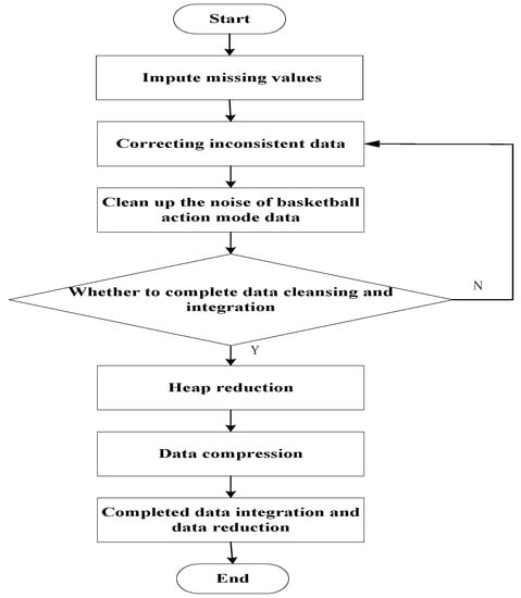The data processing of basketball action mode was divided into two steps. Firstly, the data of basketball action mode was cleaned and integrated. After the data of basketball action mode was cleaned and integrated, the data of basketball action mode was integrated and reduced. Figure 3 shows a picture of basketball action. Figure 4 is a data processing flow chart of basketball action mode.