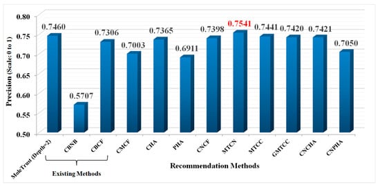 After computing the RMSE, we converted the RMSE to precision by Equation (14), in which MaxError represents the maximum error range of the rating score (the Likert scale, 1–5, is used for the rating; thus, MaxError is 4).