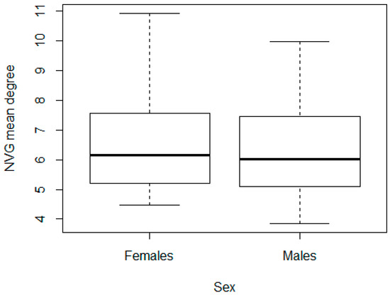 Distribution of NVG mean degree by sex.