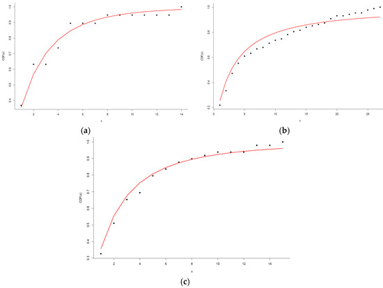 For computational purposes, the power-law is considered as where is the Hurwitz zeta function. Then, is computed in order to maximize the likelihood function For specific details, we refer readers to reference [41].