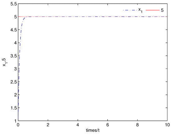 In the next, with initial conditions: = , numerical simulation is made. The simulation result is shown by the following figure. From Figure 3, we can see that tends to the given command quickly. Figure 4 shows the state of the system (22) converges to a constant as .
