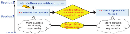 Inspired by the research above, the objective of this work is to apply and modify the “Symmetry Criterion” method () [30] in a detailed symmetry analysis of the noise-perturbed M-set. Specifically, the contributions of this work are as follows: