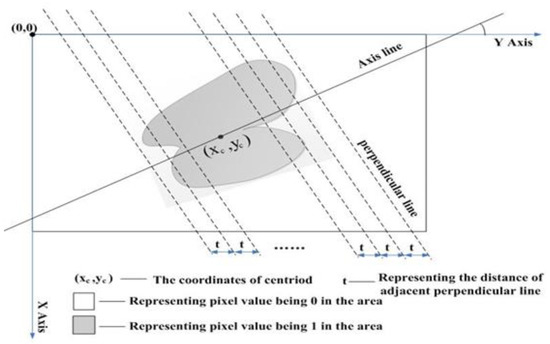 where A represents the area of the corn kernel, S is the corn kernel region of image, (x, y) is the coordinate of a pixel inside S, and a pixel value of 1 was assumed in this study.