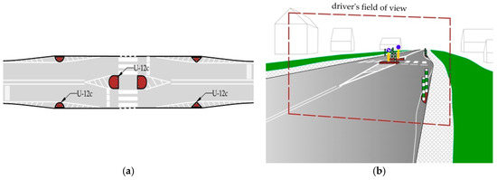 Sight distance after the pedestrian refuge: (a) 200 m; (b) 140 m.