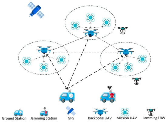 With the advent of software-defined radio (SDR) technology, programmable, intelligent wireless attack devices will pose a greater threat to UAV networks. Smart attack behavior can autonomously perceive the state of the wireless spectrum. By analyzing the characteristics of the defender’s behavior, it can carry out various types of attacks, such as eavesdropping, jamming, and spoofing. Among them, the jamming attack has the lowest technical threshold, the least implementation cost, and the most direct attack effect. The jamming attack directly weakens or blocks the UAV network communication links, so it is urgent to address this kind of smart attack behavior.
