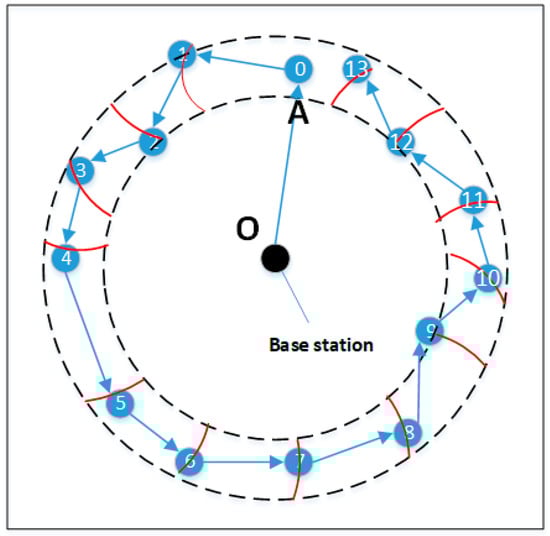 As shown in Figure 3, the order of for each node is as follows: . Therefore, the algorithm runs counterclockwise along the annular region in the figure and gradually adjusts the time slot.