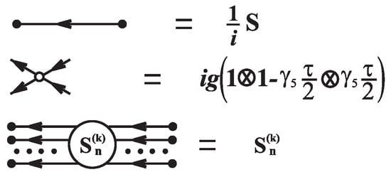 - Jafarov, R.G.; Rochev, V.E. On multi-quark Green functions in Nambu-Jona-Lasinio model. In Fundamental Problems of High Energy Physics and Field Theory. New Physsics at Colliders and in Cosmic Rays; Petrov, V.A., Ed.; Publishing House of Institute of High Energy Physics, National Research Centre “Kurchatov Institute”: Protvino, Russia, 2005; pp. 26–32. [Google Scholar]