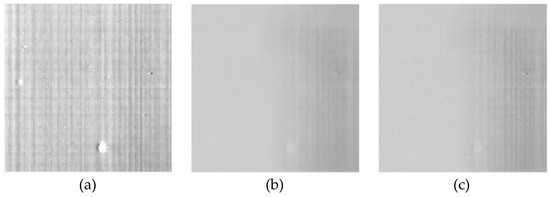 According to the model (Equation (2)), our objective is to obtain the initial value of x from a given y, where can be viewed as the stripe nonuniformity. To accomplish this, we transform this problem into image pixel estimation to bias .