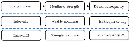 In Figure 5, we present the flow chart of approximation computation regarding δ. For example, in interval I, it just requires the first order dynamic frequency for the weakly nonlinear feature; in interval II, it demands the second order or other possible kth order dynamic frequency, , and the modified EBM results improve the accuracy of computation, for its strongly nonlinear character.