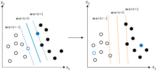 In Equation (5), is the weight vector of the classification plane with the kth feature eliminated. If the elimination of a particular feature leads to the largest , the corresponding feature is considered as the most influential one.