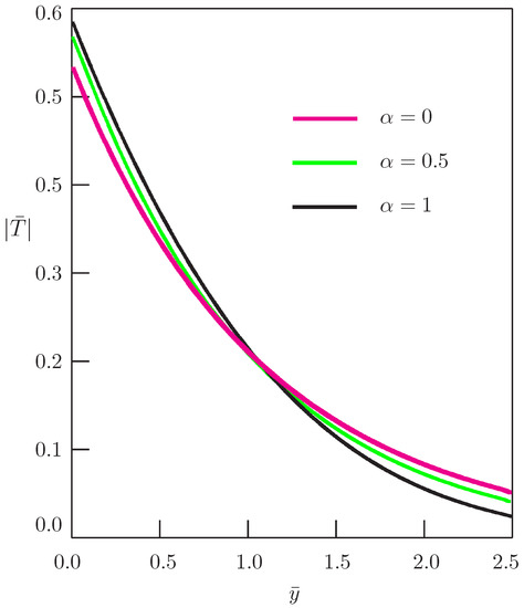The dependence of the solution on the spatial coordinate x is shown in Figure 1 and Figure 2; the dependence of the solution on the spatial coordinate y is depicted in Figure 3 and Figure 4. In calculations, we have used the non-dimensional quantities