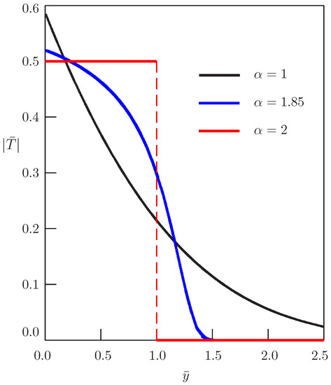 Strength of solids depends significantly on the presence in a real solid such defects as cracks, slits, holes, inclusions, etc. During deformation in the vicinity of such defects, there appears considerable stress concentration which can lead to formation of new and growth of existing crack and, hence, to local or global fracture of a solid. Thermal shock conditions which can arise during sudden cooling of a solid can result in very high thermal stresses near a crack, therefore, thermal shock is an important fracture mechanism of brittle materials. The pioneering papers [32,33] laid the groundwork for study of thermoelastic problems for solids with cracks and slits based on the classical heat conduction Equation (3). The literature on this subject is quite voluminous (see, for example, Refs. [34,35,36,37,38,39,40,41,42] and references therein). More general heat conduction equations imply formulation of associated theories of thermal stresses. Thermoelasticity associated with the time-fractional heat conduction Equation (15) was proposed in [11]; the book [26] sums up investigations in this field. The first paper on fractional heat conduction in a solid with a crack was published by the authors [43]. In the present paper, the time-fractional heat conduction equation with the Caputo derivative is solved for an infinite plate with two external half-infinite slits whose surfaces are exposed to the heat flux loading. The thermal stress aspect of the problem including investigation of the stress intensity factor will be studied in future research.